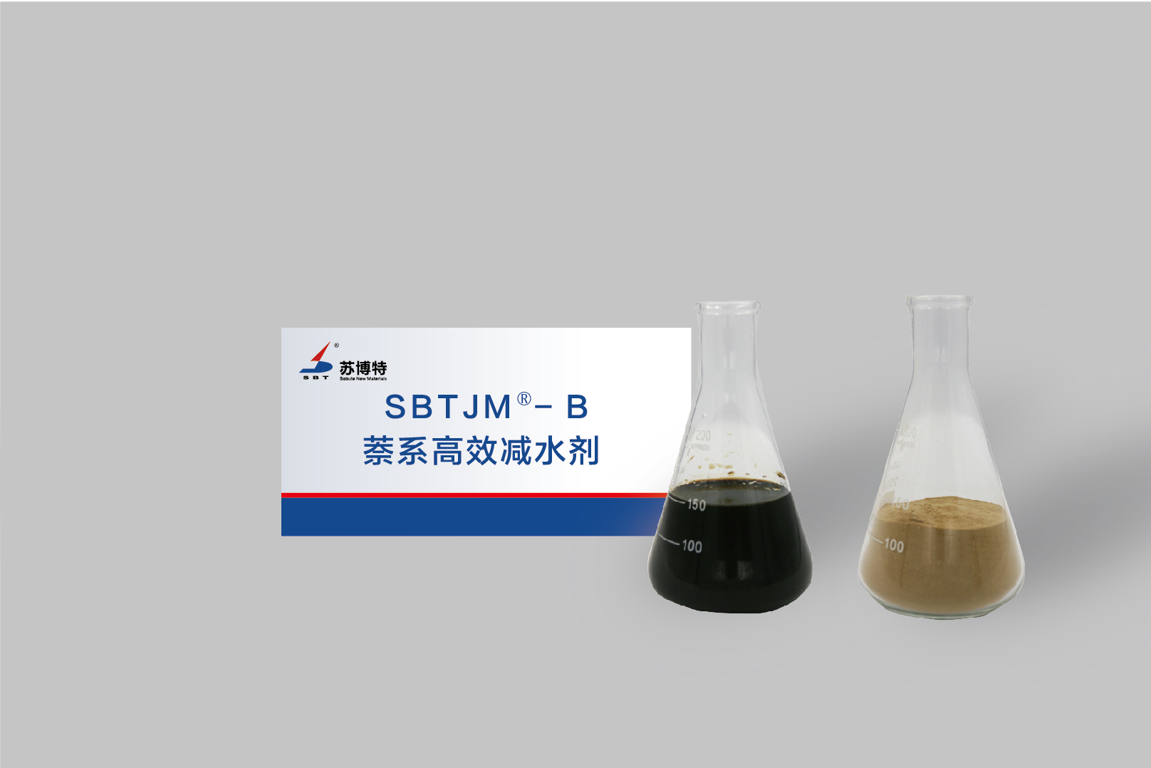 高效减水剂产品采用具有自主知识产权的先进缩合工艺,基于对产品分子量和电荷密度的合理调控,有效提高了吸附本产品的水泥颗粒间的静电斥力,具有非引气、高效减水、对水泥适应性强和高效增强等优点。公司产品包括SBTJM®-A萘系高效减水剂、SBTJM®-B萘系高效减水剂、SBT®-BT脂肪族高效减水剂和SBT®-MAS氨基高效减水剂,产品使用方便,特别适合于有高效减水和增强要求的常态混凝土、蒸养混凝土及预应力混凝土工程,也可用作复合混凝土外加剂的母体材料。